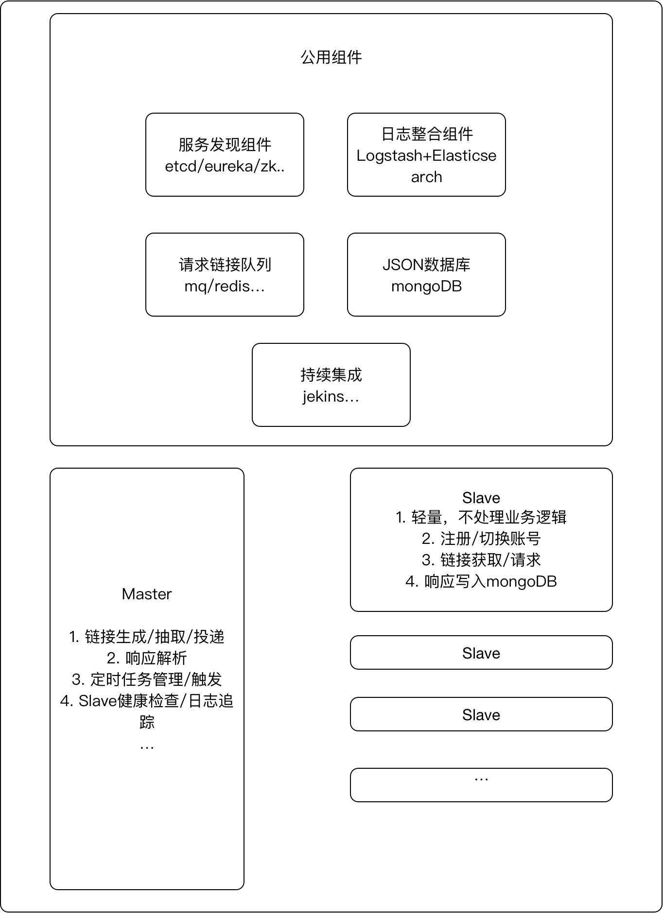 master统一生成链接投递到mq或者redis queue,slave从对应的位置获取任务,根据执行结果修改链接状态