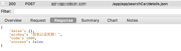 可以看到所有的接口请求都带着一个key字段,这个字段用于验证这个请求是否合法,无论是修改 key字段或者param中携带的请求参数,都会返回签名认证失败的提示。