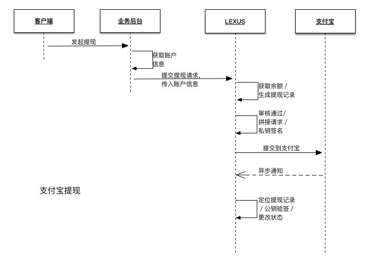 从支付宝账户付款出去分为到其他支付宝账户和到银行卡账户,官方提供的文档中只有到支付宝账户
