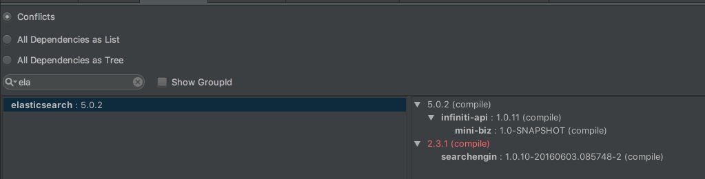 等相关的NoClassDefFoundError异常,大都是jar包版本冲突导致的,在idea中可以通过Maven Helper插件快速查看。