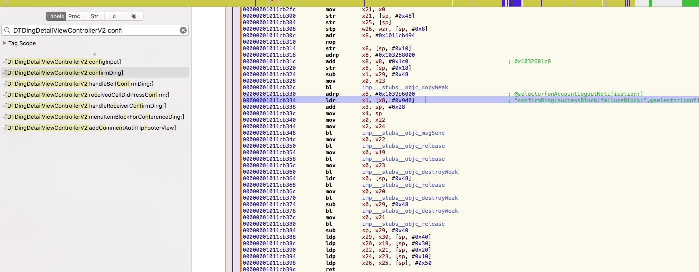 可以看到对应的视图是DTDingDetailViewControllerV2,打开Hopper Disassemble中查看对应代码逻辑:
