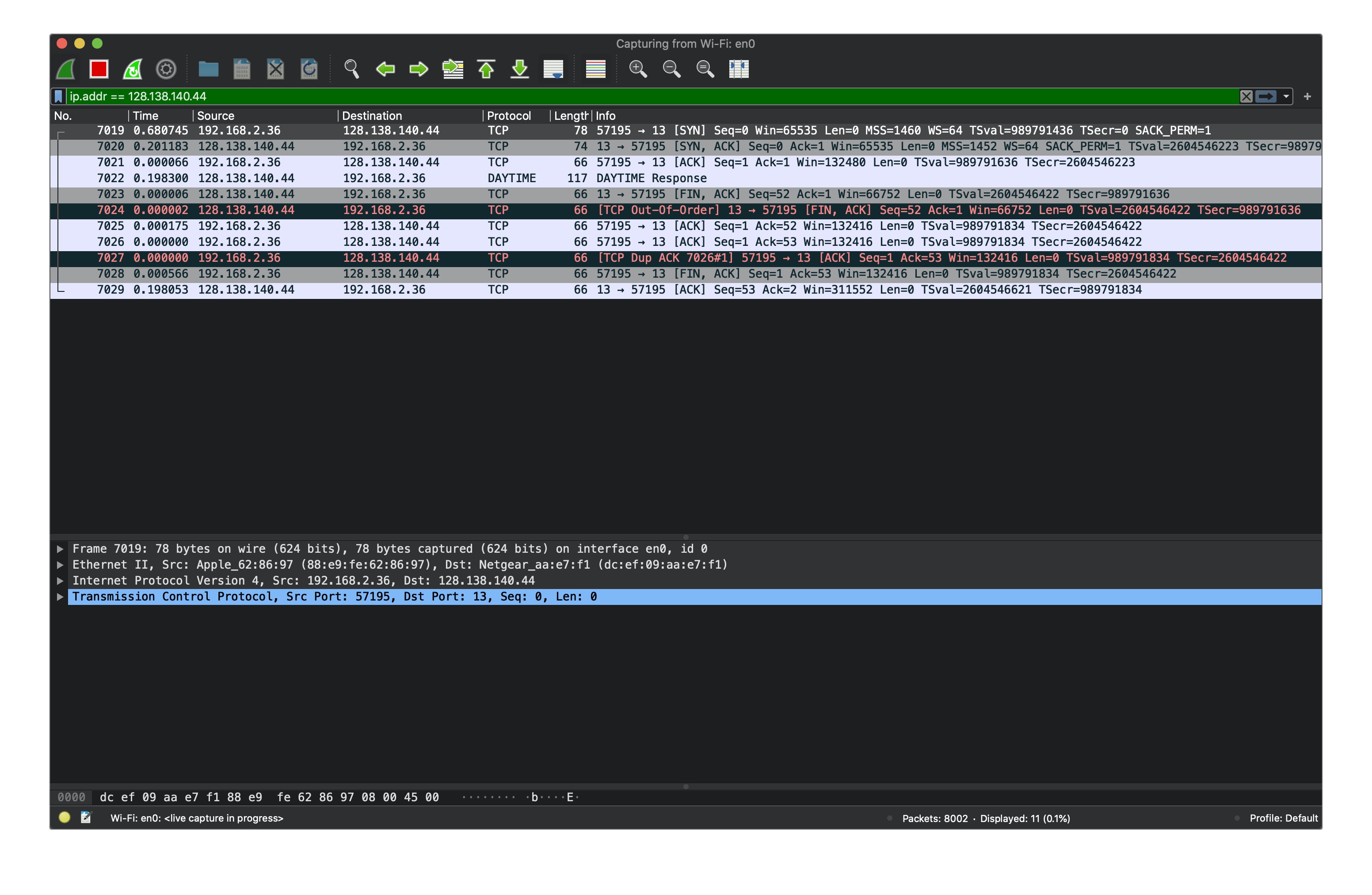 本地通过第一章中的程序访问:128.138.140.44 交互报文如下:
